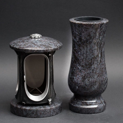 Grabschmuckset aus Granit Orion – Handgefertigte Grablaterne & Vase für edle Grabdekoration