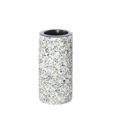 Die massive und standfeste Grabvase bleibt zuverlässig an ihrem Platz, selbst bei starkem Wind. Die feine Politur hebt die natürliche Maserung des Granits hervor und macht jedes Exemplar zu einem Unikat.